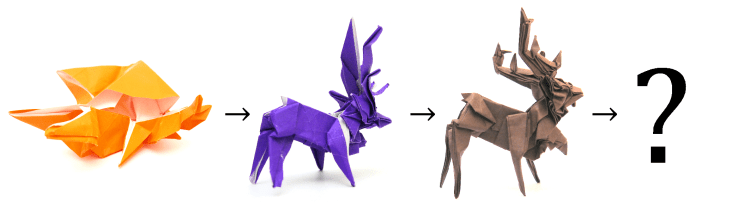 There are a variety of antlered creatures with similar body structures, and no shortage of origami depictions for them. I’ve definitely folded Lang’s Bull Moose, and a couple of different Deer designs by John Montroll. Thankfully these were all at least a decade ago and I can’t remember these designs. It’s critical that I resist the urge to look at any of existing designs or I’m not giving myself the opportunity to be as creative as possible.